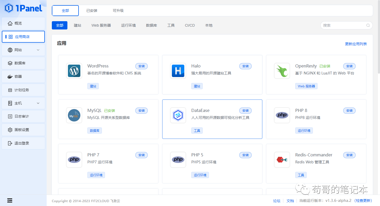 2. 功能和模块:宝塔提供了丰富的功能和模块,包括网站管理、数据库管理、文件管理、SSL证书管理、邮件服务、安全防护等。宝塔还提供了一键安装常见的Web应用程序,如WordPress、Joomla等。1Panel提供了类似的功能,但可能没有宝塔的模块和应用程序安装选项那么多。